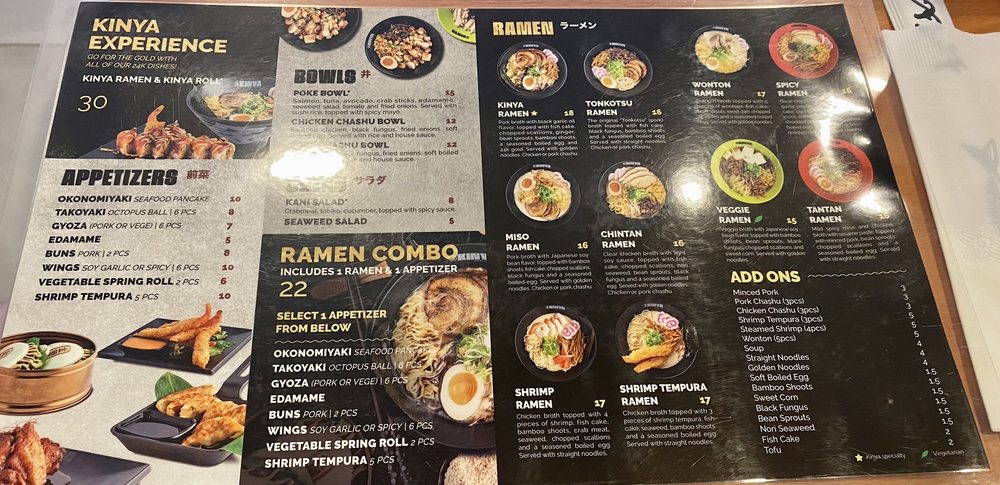 Located in Gainesville, FL, Kinya Ramen is a must-visit for ramen enthusiasts and sushi lovers. With a variety of vegetarian options and a casual atmosphere, this restaurant offers a memorable dining experience. Customers rave about the flavorful Tonkatsu Ramen and unique rolls like the Naruto and Kinya rolls. The addition of edible gold in the Kinya roll adds a touch of luxury to the dining experience. The menu also features creative cocktails and must-try appetizers like spicy Korean wings and pork buns. Service is praised for being fast and efficient, and the anime-themed decor adds a fun twist to the ambiance. Overall, Kinya Ramen is a hidden gem for those craving authentic Japanese cuisine in Gainesville.